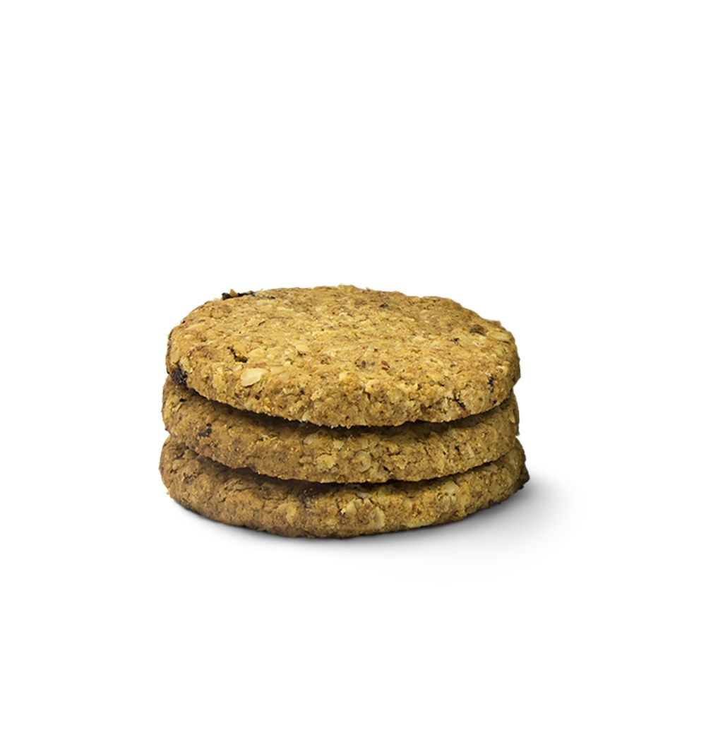 Ingredientes: Copos de aveia, farinha integral de trigo, óleo vegetal (girassol alto oleico), açúcar, passas, preparação de frutas (fruta (purê de maçã, sumo de kiwi), xarope de frutose e glicose, xarope de glicose, humectante (glicerol), açúcar, fibra de trigo, agente humectante (pectina), óleo vegetal (girassol), corretor da acidez (ácido cítrico), aroma, corante (E141)), fibra de maçã, xarope de glicose e frutose, fibra vegetal, gaseificantes (carbonato ácido de sódio, carbonato ácido de amônio), sal, aroma de baunilha, antioxidante (extracto rico em tocoferóis). Pode conter vestigios de leite e de soja.