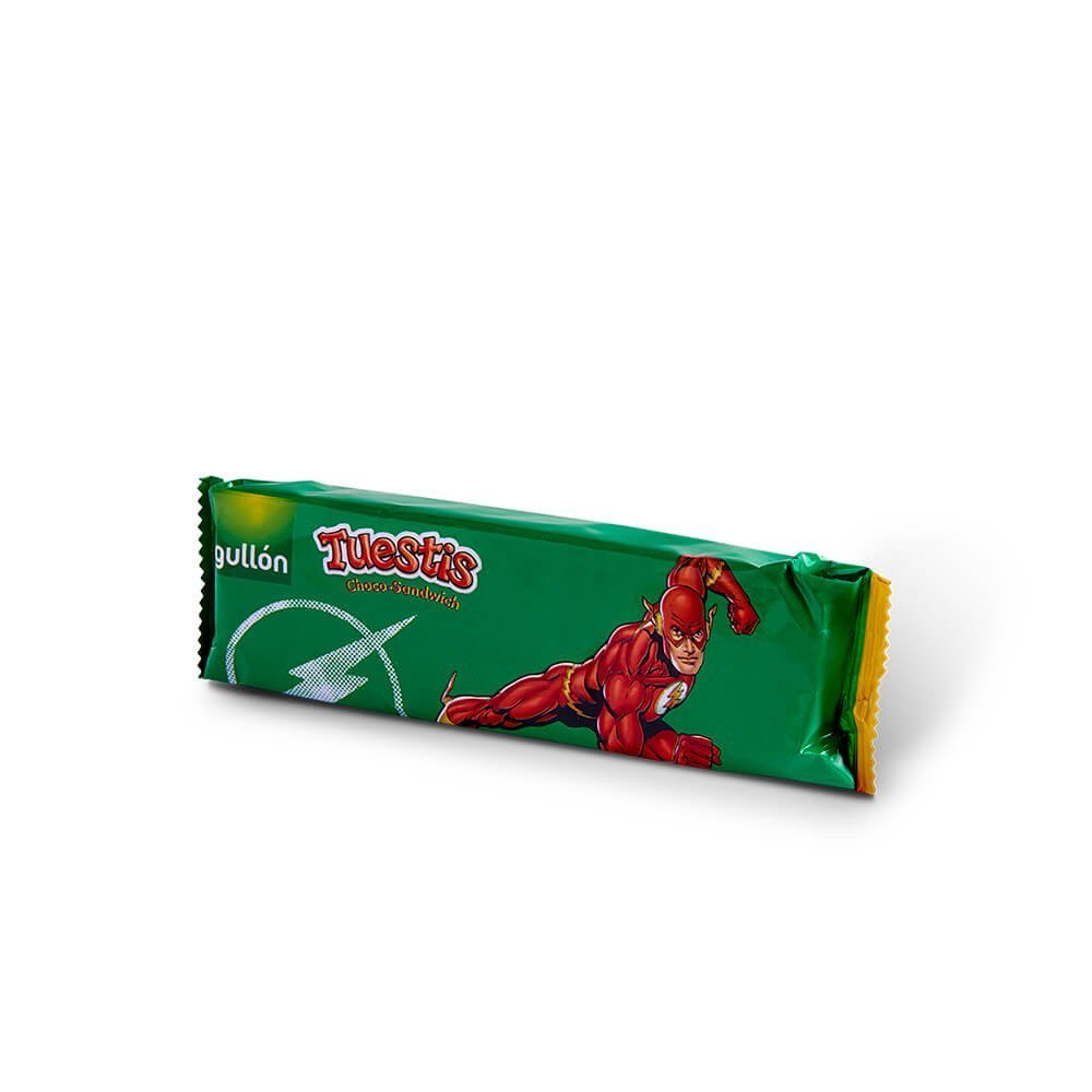 As bolachas infantis Tuestis Choco-sanduíche super-heróis possuem um alto teor de vitaminas e ferro São uma fonte de cálcio e vitamina B12. Vem em 5 embalagens individuais para que as crianças possam levá-las para qualquer parte.